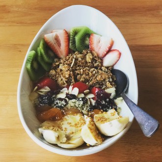 Meet the Bliss Bowl, greek yogurt topped with sesame granola, slivered almonds, dried cranberries & apricots, seasonal fruit, hemp hearts, bee pollen and topped with honey drizzle ❤