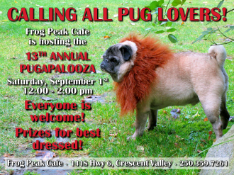 Come join us for some fun and laughter at the 13th Annual Pugapalooza! It’s happening here at the Cafe on Saturday, September 1, from 12-2!